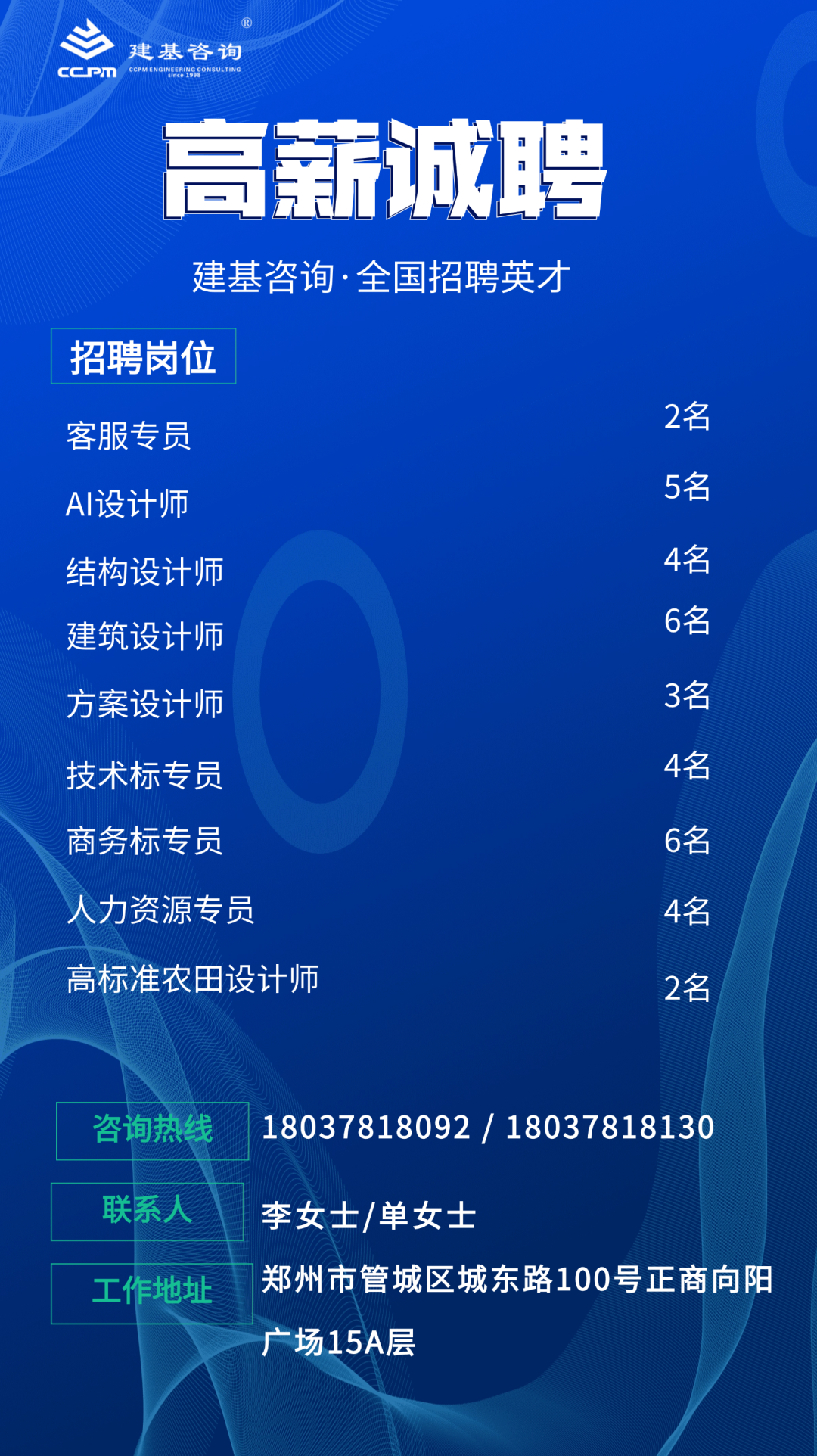 本次招聘采用電子郵件形式報名,請應聘人員下載并填寫《建基咨詢應聘人員登記表》(文末下載)與個人簡歷及相關證書掃描件(文件命名格式:應聘崗位-姓名-應聘人員登記表/個人簡歷/證書)