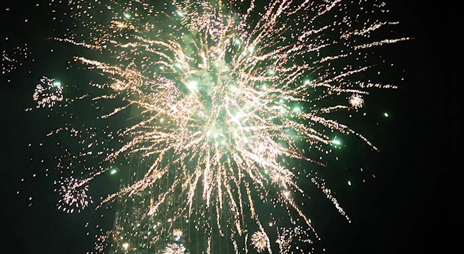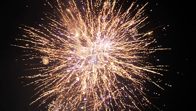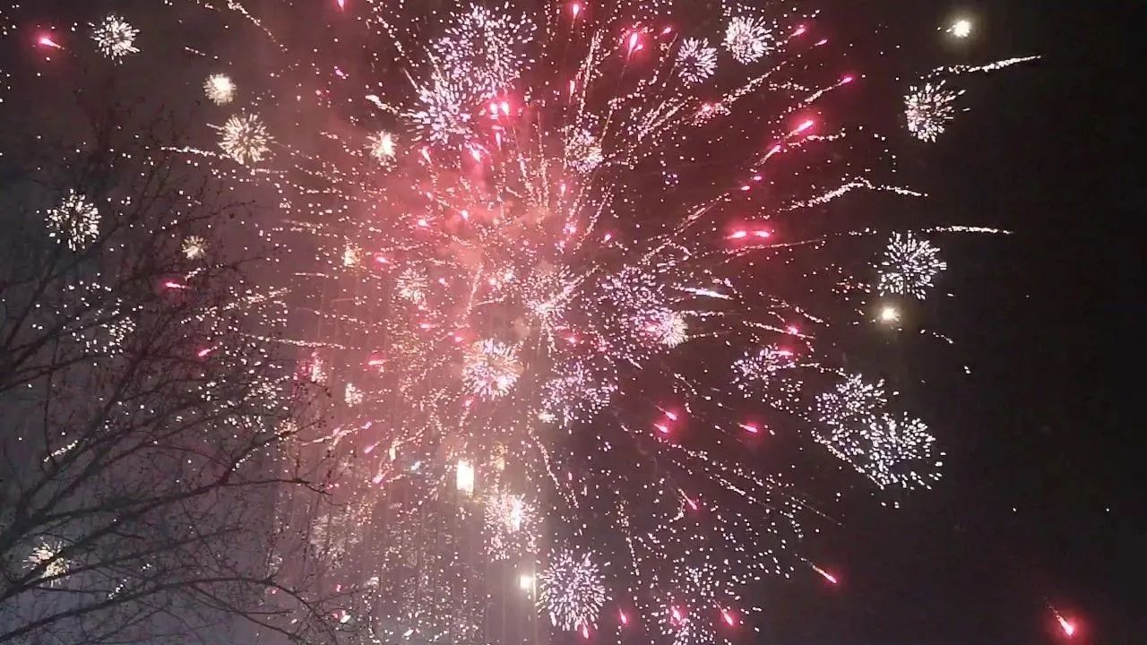 一枚枚象征著喜慶安康、歡樂祥和的禮花騰空而起,伴隨著幾聲脆響,數朵絢爛的花朵在夜空中綻放,耀眼奪目,好似一幅幅絢色彩繽紛的美麗畫卷。